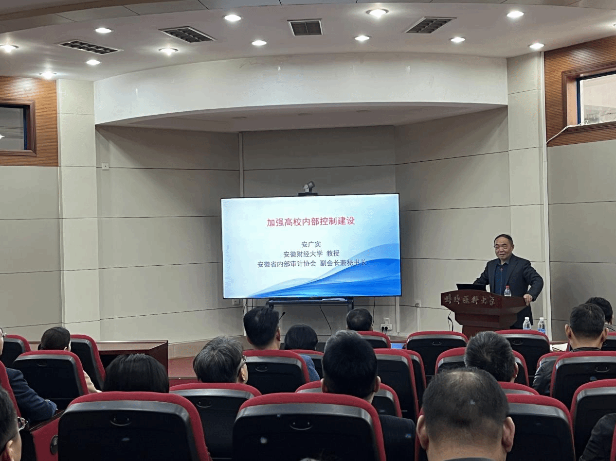 会议特邀安徽省资深内控建设专家、安徽财经大学教授安广实作《加强高校内部控制建设》专题报告。安教授依据财政部、教育部对内部控制建设的要求,聚焦高校内部控制建设,从加强高校内部控制建设的必要性、安徽省高校内部控制建设的现状、加强高校内部控制建设的具体方法三个维度展开深入实际的阐述。报告兼具理论高度,又与高校实际情况紧密贴合,内容详实、指导性强,为学校后续扎实推进内部控制建设工作提供了宝贵的方法与指导。